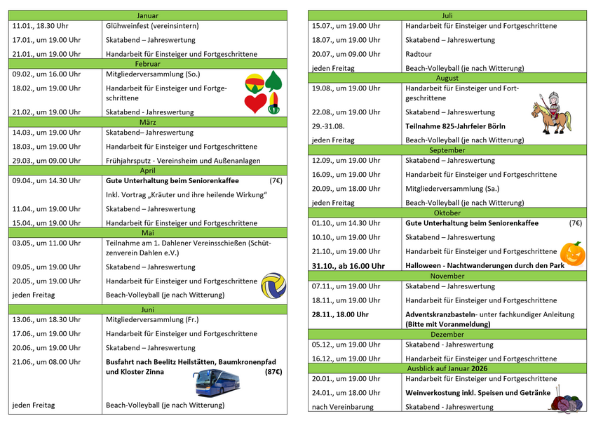 Unsere Vereinsmitglieder wollen durch ihr ehrenamtliches Engagement dazu beitragen, das Leben in unserer ländlich geprägten Region aufzuwerten, das Miteinander der Dorfgemeinschaft zu stärken und attraktive Veranstaltungen für Einwohner und Gäste durchzuführen.